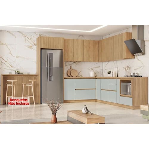 Cozinha Completa Rainha 21 Peças (6 Armários + 6 Balcões + 1 Ilha + 8 Peças) C6P75 Nature/Verde - Nesher Abaixo segue os produtos que compoem o KIT: