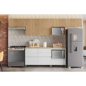 Armário Aéreo p/ Cozinha Rainha c/ 1 Porta Basculante Ripada e Nicho Microndas 70 cm Nature - Nesher