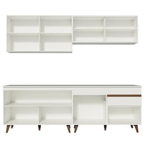 O acabamento é branco, feito em Pintura Poliéster ecológica de alta resistência, que dá maior destaque à tonalidade e conserva a beleza do móvel por mais tempo.