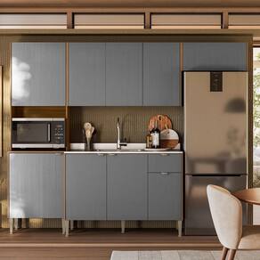 Deixe sua cozinha mais completa com um conjunto versátil e bem distribuído, ideal para organizar utensílios, mantimentos e acomodar eletros com praticidade. O kit é composto por Cozinha (armário) + Balcão para Pia, ambos com excelente padrão de acabamento em MDP.