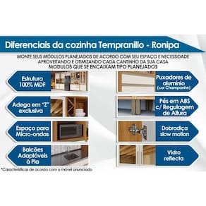 Abaixo segue os produtos do KIT: Cozinha Completa Tempranillo 3 Peças (2Aéreos+1Paneleiro) C3P82 Amendoa/Off White - Ronipa