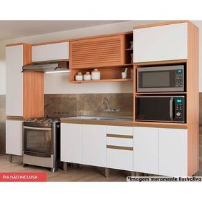 Cozinha Completa Completa Thela Macadâmia (2 Aéreos + 1 Balcão + 2 Paneleiros) 5 Peças Freijo/Branco - Telasul