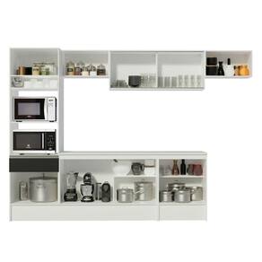 Para completar, a torre-quente possui espaço para forno e micro-ondas. Também permite a instalação de forno embutido.