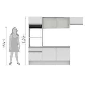 - Dimensão aprox. do produto: Altura: 210cm X Largura: 240cm X Profundidade: 52cm | Balcões e paneleiro e 31cm nos aéreos