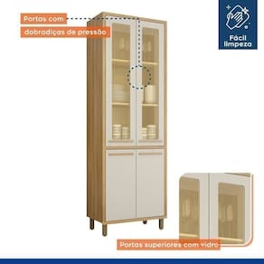Altura do Conjunto: 226 cm Ambiente: null Ambiente Principal: Cozinha Cor: Cinamomo/Off White Informação Complementar: 1x Armário Paneleiro 4 Portas com Vidro Torino Cinamomo/Off White Largura: 73 cm Altura: 226 cm Peso: 63,5 kg Profundidade: 50 cm Necessita Montagem: Sim