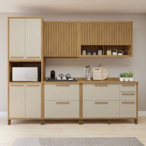 Dê um toque especial à sua cozinha com o nosso conjunto de armários de cozinha! Nosso kit vem com um armário aéreo de 3 portas e um com 2 portas com detalhes ripados que adicionam um charme maior ao ambiente, além de otimizar ainda mais o espaço da sua cozinha. Os dois balcões são perfeitos para armazenar desde panelas até utensílios de forma prática, sem deixar aquela baguncinha. E para completar, o paneleiro com nicho para micro-ondas mantém sua cozinha super moderna. Esse combo é perfeito para quem busca praticidade, elegância e aquela sensação de ambiente planejado, trazendo a funcionalidade em um só kit!