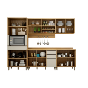 Quer deixar sua Cozinha ainda mais bonita e organizada. Que tal a cozinha Turquesa 5 peças, sua composição de módulos foi projetada para proporcionar praticidade e funcionalidade. Possui amplo espaço para acomodação de condimentos, divisor de talheres na gaveta abaixo do nicho do micro-ondas., gavetas com corrediças telescópicas, pés com regulagem de altura. Ah!. Que tal?Inclui: - Paneleiro - Aereo c/ Nicho - Aereo Bascula - Balcao 2 gvts 3 portas - Balcao 2 pts 80Informações Básicas-Tipo: Cozinha 5 peças-Marca: Valdemóveis-Modelo: TurquesaCaracterísticas-Estrutura: MDP-Acabamento: Em Pintura U.V-Portas: Sim, 12 portas, sendo 09 portas abrir com dobradiças metálicas e 03 portas basculante com pistão a gás-Gavetas: Sim, 03 Gavetas com corrediças telescópicas e gaveta abaixo do nicho para micro-ondas com divisor de talheres na gaveta.-Puxadores: Sim, em Alumínio-Nicho: Sim, com espaço exclusivo para micro-ondas-Prateleiras: Sim, para melhor acomodação dos mantimentos e utensílios-Pés: Sim, com 14 cm de altura com regulagem de altura-Adega: Não-Extra: Espaço amplo para acomodação de condimentos ** Utensílios não acompanha o produto-Dimensões do produto montado-Largura: 280 cm-Altura: 217 cm-Profundidade: 48,5 cm-Peso: 162,40 Kg