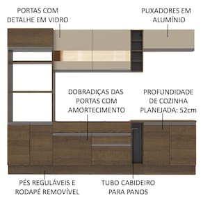 - Profundidade: Balcões e paneleiro 52cm | Aéreos 31cm