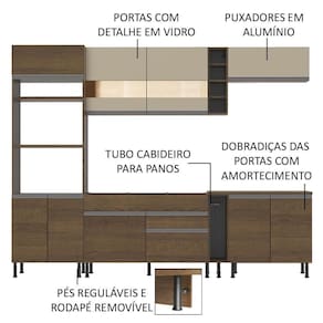 - Todos os módulos inferiores possuem também pés reguláveis e o rodapé é removível para facilitar a limpeza