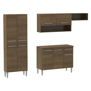 - Cozinha divididade em três módulos independentes: paneleiro, balcão de pia e o aéreo com duas portas e dois nichos.