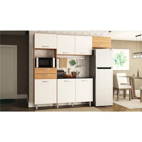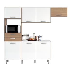 Cozinha Conjugada Poliman Móveis Lia com 7 Portas e 2 Gavetas - Carvalho/Branca