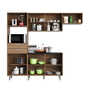 Com uma coloração maravilhosa e um design que acompanha a tendência moveleira, esse belo conjunto permite que você tenha as suas panelas, louças, mantimentos e utensílios bem arrumados e acessíveis.