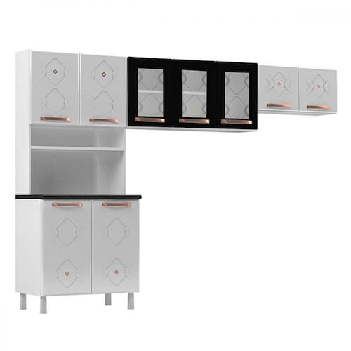O(a) Cozinha de Aço Compacta Mirage 9 Portas com Vidro Branco/Preto - Telasul é produzido em MDP na escala de brilho Brilhante, e possui um grau de dificuldade de montagem: Médio.
