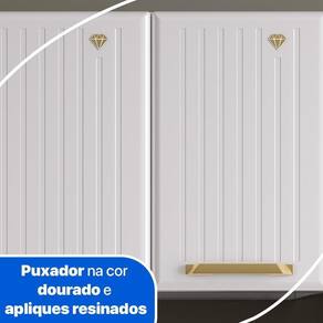 A linha Diamante é aposta certa para trazer mais praticidade, resistência e brilho para a sua cozinha. Essa composição conta com 3 módulos robustos - fabricados inteiramente em aço - que passam por pintura eletrostática de acabamento brilhoso, um processo que confere qualidade, proteção anticorrosiva e mais resistência ao móvel. Internamente, é possível acomodar panelas, louças, travessas ou alimentos - de maneira organizada e funcional. O módulo Kit é um grande aliado aqui: possui espaço reservado para micro-ondas, forno ou qualquer eletro que você precise ter sempre ao alcance das mãos de forma prática e ergonômica. O Armário aéreo é um daqueles módulos queridinhos para armazenar e também decorar a cozinha, além dos belos vidros serem serigrafados e temperados, para maior segurança. As delicadas linhas verticais das portas desta cozinha inspiradas na tendência atual da decoração - em combinação com o aplique em alto relevo do diamante e o belo puxador em tom dourado, fazem o ambiente brilhar. Complemente essa cozinha outros itens da mesma linha para criar o ambiente dos seus sonhos.