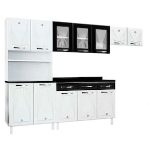 Cozinha de Aço Completa c/ Kit para Micro-ondas Telasul Star C/ Vidro 4 Peças Branco/Preto