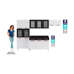 Cozinha de Aço Completa com Balcão Regina Multimóveis Glass CR6142 Branco/Preto