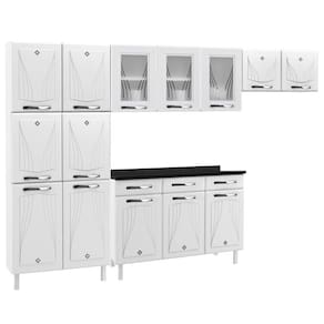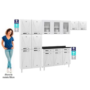 A Cozinha de aço Star New é perfeita para quem busca qualidade e funcionalidade aliadas à beleza. Essa composição conta com 4 módulos espaçosos e muito práticos: Paneleiro duplo, armário triplo médio, armário duplo baixo e balcão com tampo. A elegante serigrafia em alto relevo nas portas, os apliques de alto brilho com acabamento em resina, os puxadores robustos na cor ônix. Além da estética do design, os vidros temperados e serigrafados garantem mais segurança e os pés possuem sistema de regulagem de altura – tudo para facilitar a rotina de um dos ambientes mais importantes da casa: a cozinha. Os produtos da Telasul passam por um processo de pintura eletrostática e anticorrosiva com acabamento brilhoso, que garante a qualidade por mais tempo. Acabamento da Prateleira: Pintura Escala de Brilho da Prateleira: Brilhante Acabamento da Gaveta: Polipropileno Escala de Brilho da Gaveta: Brilhante Material do Puxador da Gaveta: Poliestireno Acabamento da Porta: Pintura Escala de Brilho da Porta: Brilhante Material do Puxador da Porta: Poliestireno Acabamento: Pintura Acabamento dos Pés: Polipropileno Acompanha Tampo: Sim Altura dos Pés: 14,6 cm Ambiente Principal: Cozinha Complexidade da Montagem: Média: pode ser montado por mais de uma pessoa e/ou necessite de maior conhecimento para montagem Cor: Branco Cor do Produto: Branco Escala de Brilho: Brilhante Gaveta com Chave: Não Itens Inclusos: 1 Cozinha completa e Manual de montagem Manual de Montagem e Instalação: https://cdn2.madeiramadeira.com.br/atributo/telasul/1803451-816470-01.pdf Material da Dobradiça/Corrediça da Porta: Aço Material da Gaveta: Polipropileno Material da Porta: Aço Material da Prateleira: Aço Material do Tampo: MDP Material dos Pés: Polipropileno Medida de cada item (A x L x P): Balcão: 91cm x 120cm x 52cm; Paneleiro: 193cm x 80cm x 29cm; Armário triplo: 55cm x 120cm x 29cm; Armário duplo: 37,5cm x 80cm x 29cm Necessita Montagem: Sim O Balcão Acompanha Pia: Não Origem do Produto: Nacional Pés Reguláveis: Sim Peso: 81,99 kg Peso Máximo por Gaveta: 3 kg Peso Máximo por Prateleira: 15 kg Possui Pés: 06 Possui Portas: Sim Possui Prateleiras: Sim Possui recorte para Cooktop: Não Possui Rodízio: Não Recomendações de Uso, Manutenção e Limpeza: - A limpeza deve ser feita com pano macio e seco ou levemente umedecido com água e sabão neutro. Não devem ser utilizados produtos como palha de aço ou qualquer material que arranhe a superfície de seu produto.- Evite guardar substâncias como sal, vinagre, limão, cebola, etc. em contato direto com o móvel.- Recomenda-se forrar as prateleiras com papel ou plástico liso nas áreas de maior atrito. Sapatas Niveladoras: Não Sistema de Montagem: Parafuso, porca e acessórios plásticos Suporta Até (kg): 189 kg Tipo de Corrediça da Gaveta: Simples Tipo de Dobradiça da Porta: Simples Tipo de Porta: Bater Tipo de Puxador da Gaveta: Externo Tipo de Puxador da Porta: Externo
