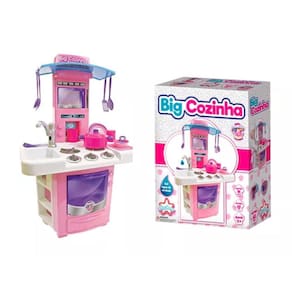 Brincar de casinha já é bom, de cozinhar mais ainda e tudo isso acaba de ficar melhor com a Nova Big Cozinha, ela possui microondas, duas bocas de fogão com grelhas cromadas, pia, forno, pratinhos, copinhos e diversos utensílios básicos. Além disso, possui também torneira que sai água de verdade! As duas portas frontais, tanto do microondas, como do fogão, abrem. Tudo para deixar a brincadeira o mais real possível se sentindo numa cozinha de verdade. As crianças vão amar esse brinquedo. É diversão garantida!