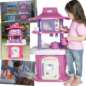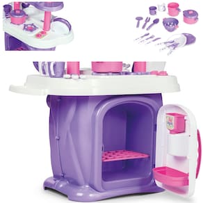 A Cozinha Le Gran Chef da Tateti possui dois lados diferentes que podem ser usados por mais de uma criança. Vem com forninho, microondas com som, geladeira com dispenser de água, pia que sai água de verdade, panelas, talheres e muito mais!