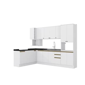 A perfeita união entre estilo e qualidade você encontra no Combo CB1086 da Cozinha Celeste da Kappesberg. Produzida em chapa MDF de 15mm, ela garante robustez, firmesa e qualidade, além de um acabamento perfeito. E com sete camadas de pintura na cor branco, tanto na parte interna quanto na externa, seu acabamento em brilho, além de combinar com todos os ambientes, aumenta a luminosidade do espaço, deixando sua cozinha perfeita. Com dez módulos mais tampos, o conjunto possui formato em "L" e 2,30m de altura, combinando estilo e qualidade para todos os ambientes. E com amplo espaço interno, você poderá organizar louças e mantimentos, além de preparar receitas especiais e deliciosas para receber sua família ou amigos. Com diferenciais que fazem desta uma verdadeira cozinha planejada, aqui, você encontra módulo para forno de embutir, nicho para microondas, kit forno e bancada, que garantem o destaque do conjunto. E para um melhor acabamento, a cozinha possui rodapés, mas também acompanha as ferragens para ser montada suspensa, do jeito que você preferir. Os diferenciais ficam por conta das dobradiças com amortecimento, garantindo um fechamento suave e sem ruídos, das corrediças telescópicas e os puxadores na cor dourada, complementando o estilo e qualidade do produto. Viva momentos especiais e renove seu espaço com a Cozinha Celeste da Kappesberg.
