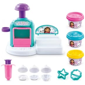 Quem quer assar com a Cakey? Crie, decore e exiba incríveis bolos de massinha de gato usando um forno de brincadeira na Cozinha de Massinha do Cakey Cat! Escolha um molde, preencha com massinha e pressione o forno para assar seu bolo. Retire do molde e use o extrusor e cortadores para adicionar coberturas decorativas e padrões de glacê. Incrível! Asse com as cores de massinha incluídas ou misture suas próprias cores personalizadas para verdadeiras delícias felinas! Inclui uma cozinha de brinquedo, 3 potes de massinha, 3 moldes de bolo, 2 cortadores e um extrusor de glacê.