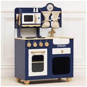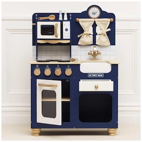 Apresentando a Cozinha de Brinquedo Oxford Deluxe da Le Toy Van, uma elegante mini cozinha em madeira pintada, projetada para pequenos chefs explorarem sua imaginação. Este brinquedo de luxo inclui um forno com porta que abre, fogão com botões giratórios, pia, micro-ondas, janela e um relógio de madeira com ponteiros móveis. O conjunto é acompanhado por utensílios de cozinha, como um batedor, uma colher, um saleiro e um pimenteiro, proporcionando uma experiência completa de brincadeira.