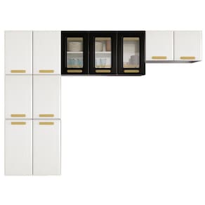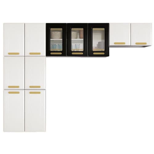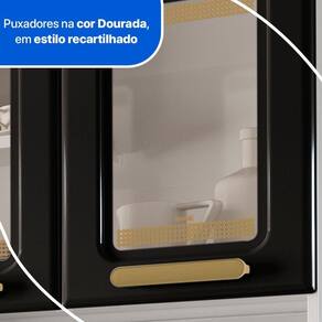 Cozinha Em L ágata 260cm Com Vidro 817460 Telasul Branco Com Preto Apresentamos a Cozinha em L Agata 260cm com Vidro 817460 da Telasul com o poder de transformar qualquer espaco. Funcional e repleta de estilo, ela e desenvolvida com materiais de alta qualidade e processos que aumentam sua longevidade. Possui vidros temperados, decorados com harmoniosas serigrafias douradas. Os puxadores merecem um destaque especial: sao imponentes, modernos e apresentam um acabamento recartilhado. Nessa configuracao com tres modulos (paneleiro duplo, armario triplo e armario duplo baixo), voce tera muito espaco para armazenar seus utensilios e alimentos de forma organizada e eficiente. Esta cozinha e fabricada em aco e recebe uma camada de pintura eletrostatica e anticorrosiva, proporcionando um acabamento brilhante - esse tipo de tratamento nao garante apenas um bonito visual, mas tambem maior durabilidade do movel. A Cozinha Agata e uma escolha inteligente e segura para o ambiente mais amado da sua casa. Especificacoes Tecnicas: Marca: Telasul Modelo: Agata Referencia: 817460 Estrutura: Aco e Vidro Quantidade de Portas: 11 Tipo de Portas: De Bater Portas com Vidro: 03 Quantidade de Embalagens: 02