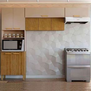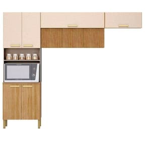 Cozinha Em L Urbane 260cm Com 9 Portas 2972 Kits Paraná Freijó/vanilla/ripado Apresentamos a Cozinha em L Urbane 260cm com 9 Portas 2972 da Kits Parana um exemplo de elegancia e sofisticacao na decoracao de cozinhas. Seus armarios superiores recuados sao um dos seus principais diferenciais, com tendencia de design para mobiliarios de alto padrao, esses armarios apresentam portas sem puxadores, com sistema de abertura avancado, onde as portas sao maiores que a estrutura do armario, garantindo uma abertura confortavel e um visual mais clean ao mobiliario da cozinha. Outro diferencial dessa cozinha e o modulo especial para forno eletrico ou microondas, com portas superiores que oferecem amplo espaco interno. O modulo inferior possui espaco com capacidade para guardar todos os utensilios que o cliente precisa para o dia a dia na cozinha. A ergonomia e facilidade de uso tambem sao melhoradas com esse design inovador. Com a cozinha Urbane, voce pode ter a certeza de estar escolhendo uma peca de design de alta qualidade para sua casa. Caracteristicas: Marca: Kits Parana Modelo: Urbane Estrutura: MDP Quantidade de Portas: 9 Tipo de Portas: De Bater Quantidade de Prateleiras: 3 Quantidade de pes: 4