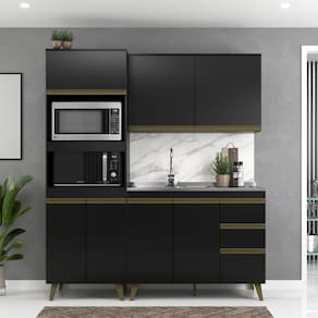 Cozinha modulada Ema 3 Peças . Produto completo fabricado com chapa MDP 15mm. Balcão 120 cm com corrediças telescópicas e dobradiças metálicas, puxadores em perfil na cor bronze combinando com a cor dos pés retrô com altura de 17 cm. Ótima qualidade e custo benefício. Ideal para quem busca praticidade em um espaço compacto. Acabamento da Prateleira: Finish Foil Escala de Brilho da Prateleira: Fosco Acabamento da Gaveta: Finish Foil Escala de Brilho da Gaveta: Fosco Acabamento da Porta: Finish Foil Escala de Brilho da Porta: Fosco Material do Puxador da Porta: Plástico Acabamento dos Pés: Poliéster Acompanha Tampo: Não Altura dos Pés: 17 cm Altura Máxima dos Pés: 17.0000 Ambiente Principal: Cozinha Balcão Suporta Pia: Sim codigo_ean: 7900288009029 Complexidade da Montagem: Baixa: pode ser montado por uma pessoa sozinha Cor: Preto Cor do Produto: Preto Cor Flex: Não Cor Interna: Preto Escala de Brilho: Fosco Espessura do Material da Estrutura: 15 mm Gaveta com Chave: Não Itens Inclusos: 1 Cozinha Completa, Kit ferragens e Manual de Montagem Linha ou Coleção: 2025 Manual de Especificação Técnica: https://product-hub-prd.madeiramadeira.com.br/968346/documents/04bb6cf9-7e56-4c48-85a6-01fcb4f1ebd32524838266217303760428025.pdf Manual de Montagem e Instalação: https://product-hub-prd.madeiramadeira.com.br/968346/documents/376fb297-5521-4549-b375-25ca3c5bd2302524837266217303760332839.pdf Marca: Yescasa Material da Dobradiça/Corrediça da Porta: Metálica Material da Gaveta: MDP Material da Porta: MDP Material da Prateleira: MDP Material do Fundo: T-HDF Material dos Pés: Plástico Medida de cada item (A x L x P): Balcão: A 87 x C 120x P 52 - Aéreo: A 69,5 x C 120 x P 32 cm - Torre: A 203 x C 70 x P 52 Montagem Flex: Não Necessita Montagem: Sim O Balcão Acompanha Pia: Não Origem do Produto: Nacional Pés Reguláveis: Sim Peso: 108,6 kg Peso Máximo por Gaveta: 7 kg Peso Máximo por Prateleira: 7 kg Possui Pés: 07 Possui Portas: Sim Possui Prateleiras: Sim Possui recorte para Cooktop: Não Possui Rodízio: Não Produto Montado: Sim Recomendações de Uso, Manutenção e Limpeza: Flanela umedecida Sapatas Niveladoras: Sim Sistema de Montagem: Parafusos Suporta Até (kg): 105 kg Tamanho Indicado da Pia: 123X53 Tamanho Indicado do Tampo: 123X53 Tipo de Corrediça da Gaveta: Simples Tipo de Dobradiça da Porta: Simples Tipo de Puxador da Gaveta: Embutido Tipo de Puxador da Porta: Externo