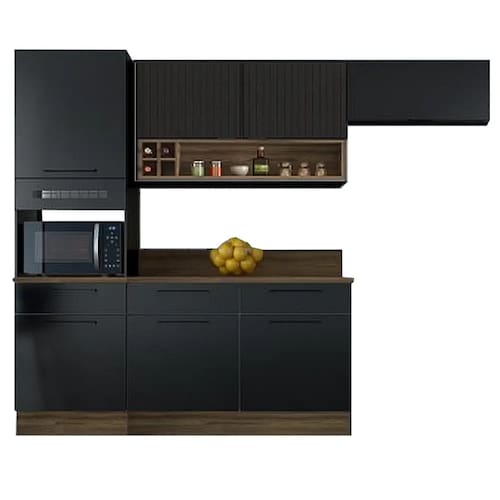Cozinha Exclusive Completa 4 Peças 7 Portas 3 Gavetas Itatiaia Você quer transformar sua cozinha em um ambiente moderno e sofisticado? Então a Cozinha Exclusive Completa 4 Peças 7 Portas 3 Gavetas Itatiaia é a escolha perfeita para você! Este conjunto de cozinha é o que você precisa para dar um toque de elegância ao coração da sua casa. E o melhor de tudo é que você vai se divertir muito montando esse quebra-cabeça gigante para a sua cozinha! Sua cozinha vai ganhar um visual incrível com o design moderno e a cor grafite deste conjunto de móveis. As 4 peças, 7 portas e 3 gavetas oferecem muito espaço para você organizar todos os seus utensílios, panelas e alimentos. A Cozinha Exclusive vem da renomada marca Itatiaia, sinônimo de qualidade e durabilidade. Feito com materiais resistentes e acabamento impecável, este conjunto vai fazer parte da sua vida por muitos e muitos anos.\nMEDIDAS\nAltura 222 cm\nLargura 265 cm\nProfundidade 52 cm\nCARACTERÍSTICAS\nFabricante Itatiaia\nModelo Cozinha Exclusive\nGarantia 3 meses\nTipo de produto Armário de Cozinha Completo\nAmbiente Cozinha\nEstrutura Predominante AÇO\nQuantidade de Portas 07\nTipo de Porta Bater, Basculante\nQuantidade de Gavetas 03 com trava de segurança\nTipo de Gaveta Externa\nTipo de Corrediça Telescópica\nAcabamento Pintura UV\nTampo Revestido em BP\nPossui Vidro Não\nMaterial do Puxador Alumínio\nNecessita Montagem Sim\nAcompanha Manual de Instalação Sim\nINFORMAÇÕES IMPORTANTES\nObjetos decorativos que porventura apareçam na foto, não acompanham o produto. Não 1nos responsabilizamos pela montagem/instalação dos produtos.\nMontagens, desmontagens e instalações são responsabilidades do cliente. Indicamos que contrate uma empresa de montagem ou um montador de sua confiança.\nAlém disso, favor verificar se os pés e acessórios estão dentro do forro inferior do produto. Em suma, todas as informações divulgadas sobre o produto são de responsabilidade do Fabricante.\nAs cores do produto podem variar de acordo com o seu monitor, a iluminação do ambiente em que você está e até mesmo a sua percepção visual. Além da cor, pequenos detalhes e acabamentos podem não ficar evidentes na foto, por isso as imagens são meramente ilustrativas.