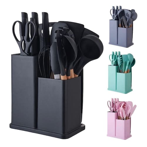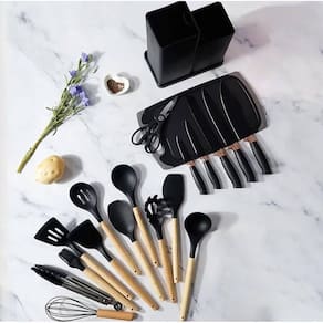 Composto por 19 peças, este kit oferece uma variedade de utensílios cuidadosamente desenhados para facilitar as tarefas na cozinha, proporcionando versatilidade para diferentes preparações. Além disso, a facilidade de limpeza é uma vantagem adicional, permitindo que os utensílios de silicone sejam lavados à mão ou na máquina lava-louças, proporcionando conveniência no seu dia a dia.