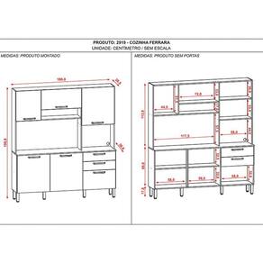 Está montando sua cozinha? Então apresentamos para você esta bela cozinha da linha Ferrara. Com seis portas, sendo uma basculante, entrega um ótimo espaço interno. Conta com duas gavetas, ideais para você guardar seus acessórios, além dos três nichos que são perfeitos para acomodar seus objetos e eletrodomésticos. Os pés reguláveis em plástico resistente garantem a estabilidade, ajustando-se ao nível do piso. Fabricado pela Kits Paraná, desenvolvido em MDP, combina durabilidade, design moderno e otimização de espaço, sendo ótima solução para quem busca modernidade e funcionalidade. Confira e aproveite!