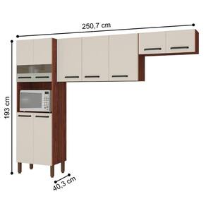 A Cozinha traz a praticidade e funcionalidade que você precisa, suas portas superiores se tornam o diferencial do produto pelo vidro espelhado, trazendo o destaque para a cozinha. Suas repartições bem elaboradas podem acomodar todas as suas necessidades para com uma cozinha, além de dispor de um nicho para micro ou forno elétrico. Sua matéria prima vem de madeiras de reflorestamento se tornando uma peça de design e responsabilidade com o meio ambiente.
