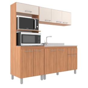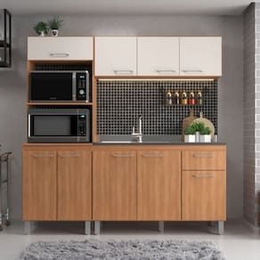 Composta por 9 portas e 1 gaveta com corrediça e dobradiças metálicas. Com espaço para micro-ondas e forno elétrico com altura de 41 cm x 60 cm de largura cada espaço.