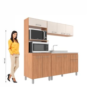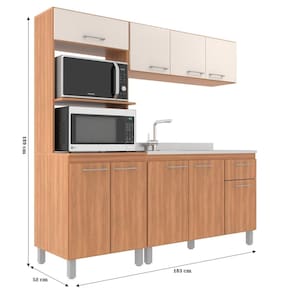 Cozinha modulada Iara 3 peças com Torre Quente possui as medidas de 189 cm de altura 183 cm de largura e 52 cm de profundidade.