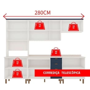 Composta por 5 módulos espaçosos, ideais para organizar utensílios, panelas e mantimentos.
