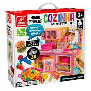 Cozinha Infantil 3D de Brinquedo De Madeira Com Massinhas Cozinha Infantil 3D de Brinquedo De Madeira Montessori Com Massinhas Marca: Brincadeira de CriançaCor: SortidoMedidas: 34 X 20 X 31 CMRecomendado Para Maiores de 3 AnosComposição: Feito em Madeira Toda colorida e cheia de detalhes como uma cozinha de verdade, possui prateleiras e janelas que abrem e fecham. A Minha Primeira Cozinha - Montessori é um brinquedo completo, com ele as crianças podem brincar com as massinhas, fazer macarrão com a seringa, utilizar os utensilios de plástico e de madeira para preparar suas receitas, e podem também moldar as massinhas em formatos de diversas frutas, doces e alimentos salgados. -madeira Reflorestada-produto Ecológico Imagens meramente ilustrativas REGISTRO: 006331/2021 Conteúdo: -1x Cozinha 3D Para Montar ;-1x Kit de utensilios de cozinha com 7 Peças de plástico ;-12x Massinhas coloridas;-20x Utensilios de cozinha coloridos e ilustrados, em madeira; -1x Molde de alimentos salgados;-1x Molde de frutas;-1x Molde de doces; -1x Seringa para moldar em formato de macarrão ;-1x Pote para guardar as massinhas;-1x Manual de instruções.Homologação Inmetro: IP-BRI-2688/2021-04
