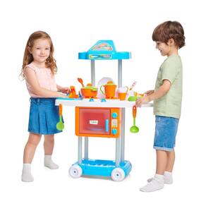 Esse equipamento de brincar faz de conta se destaca por seu design colorido e divertido, combinando azul e laranja vibrantes que atraem meninos e meninas, tornando cada momento de jogo mais envolvente.