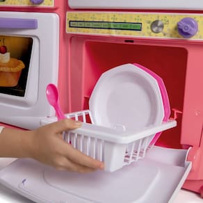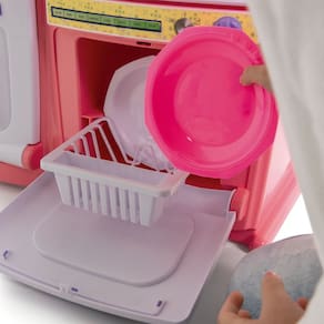 O equipamento infantil Tateti Bella conta com diferentes compartimentos, como forno, lava-louças com escorredor removível e gavetas para organizar utensílios. Cada elemento foi pensado para que a criançada brinque por horas, estimule a lógica e a coordenação.