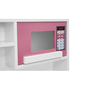 Produzida com material de alta resistência e com acabamento em pintura UV atóxica, a cozinha é segura, durável e cheia de detalhes encantadores, como fogão, micro-ondas e torneira funcional, garantindo horas de diversão saudável.