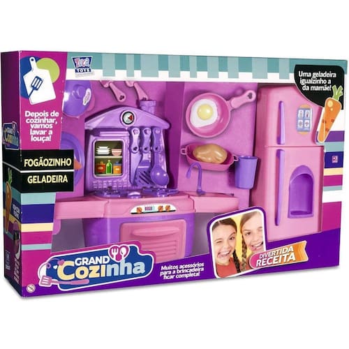 Com o Fogãozinho Chef Kids você vai poder inventar muitas receitas para brincar com toda a sua turma, crie um delicioso cardápio para toda a família. Uma brincadeira deliciosa e divertida, pensada para quem tem muita criatividade na hora de preparar pratos dignos de chef. Altura Fogão: 32cm Largura Fogão: 36cm Altura Geladeira: 35cm Largura geladeira: 15cm 01 Fogão com Pia 01 Geladeira Duplex 16 Acessórios cozinha Idade:03+ Garantia 90 dias contra defeitos de fabricação. Selo Inmetro: CE-BRI/OCP00190