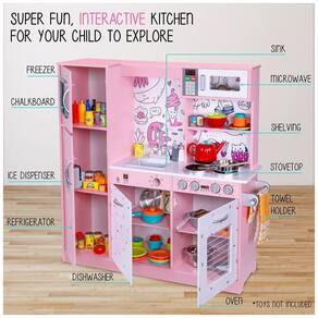 Este conjunto de cozinha é o máximo em termos de realismo, oferecendo horas de entretenimento divertido e educativo para as crianças. Ele inclui uma variedade de itens essenciais de limpeza de cozinha realistas, como geladeira, freezer, máquina de fazer gelo, micro ondas, forno, fogão, pia, máquina de lavar louça, prateleiras e toalheiro.