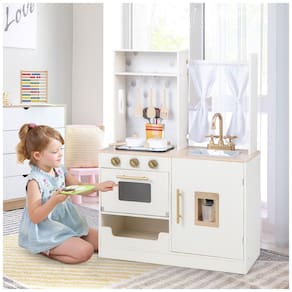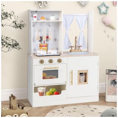 O conjunto de cozinha infantil de madeira INFANS é a escolha ideal para pais que buscam uma opção de brinquedo educativo e divertido para seus filhos. Com diversos acessórios incluídos, como geladeira embutida, forno de micro ondas, pia e utensílios de cozinha, este conjunto é construído em madeira de alta qualidade e projetado para crianças de até 3 anos.