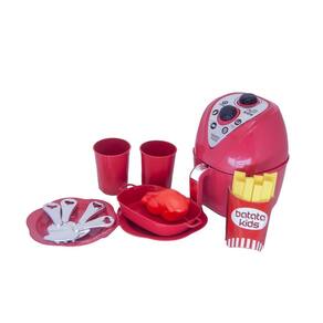 Cozinha infantil menino air fryer vermelho brinquedo 14 peças