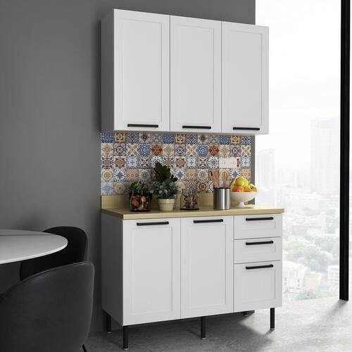 Um dos ambientes mais importantes da casa. O palco para os melhores momentos em família é sem sombra de dúvidas a cozinha. É nela que as memórias afetivas são criadas, e por isso, merecem uma atenção muito especial todos os dias! Cozinhas Tecno. Móvel desenvolvido 100% ecologicamente correto, o que garante a resistência e vitalidade do produto, promovendo ao ambiente uma melhor experiência e um melhor desempenho na organização do lar. Puxadores em alumínio preto, pé regulável para ajuste de nivelamento de 17cm em PVC com detalhe cromado, bordas em PVC, dobradiça reta caneco de 35mm com amortecedor slow motion, gavetas com corrediça telescópica para melhor desempenho e funcionalidade. Cozinha em MDF. Acompanha tampo. Altura do Conjunto: 222 cm Ambiente Principal: Cozinha codigo_ean: 7900288126580 Cor: Branca Cor do Produto: Branca Informação Complementar: 1x Balção para Cozinha 2 Portas e 3 Gavetas Branco Largura: 120 cm Altura: 85 cm Peso: 34,8 kg Profundidade: 50,8 cm Necessita Montagem: Sim