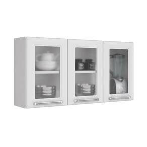 Kit Balcão Preto c/ Armário Aéreo 3 Portas 3 Vidros Branco e 1 Armário Aéreo 1 Porta Horizontal Branco
