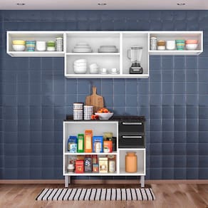 Sua cozinha completa e com a sofisticação que você merece! O conjunto Balcão 2 Gavetas e 3 Portas, com o Armário Aéreo 1 Porta Horizontal e Armário Aéreo 3 Portas com 3 Vidros Itatiaia é a sua opção de aproveitamento de espaço e estilo para sua Cozinha. O formato sugerido em "asa" fica adequado para receber fogão e geladeira nas laterais, ou mesmo ocupar espaços disponíveis sem sobrecarregar sua cozinha ou espaço externo. Os produtos Itatiaia trazem praticidade e estilo com a qualidade de quem é referência em cozinhas.