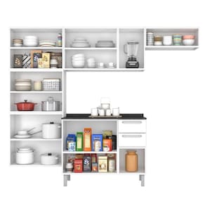 Cozinha Compacta Itatiaia Tarsila com 4 Peças e 2 Vidros Pia Inox Preto, com Paneleiro de 80 cm