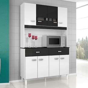 Armário para Cozinha Manu 8 Portas Branco Preto - Poquema