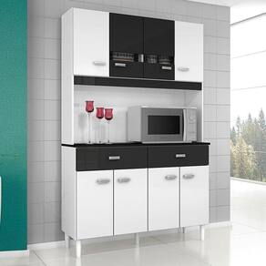 Armário para Cozinha Manu 8 Portas Branco Preto - Poquema